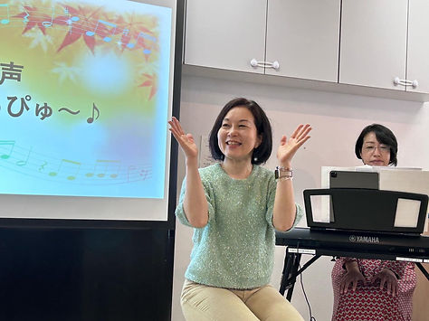 10月は、秋の歌を引き続きご一緒に沢山歌いつつも、リズムに注目して、ボディーパーカッション風のものにも皆様とチャレンジしたりしながら、しっかり歌って、パワフルに動いていただきました🎵